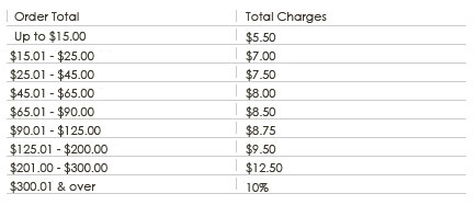 Standard Shipping rates with an additional charge of $10. Some heavy or over sized items cannot be shipped outside the contiguous 48 states. At this time, orders shipping to APO or FPO addresses will ship via USPS Parcel Post.